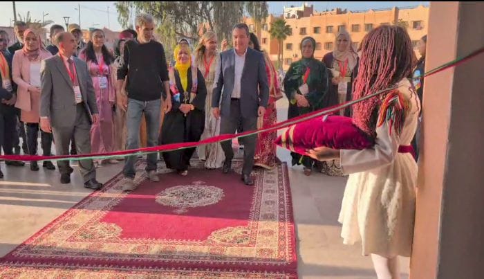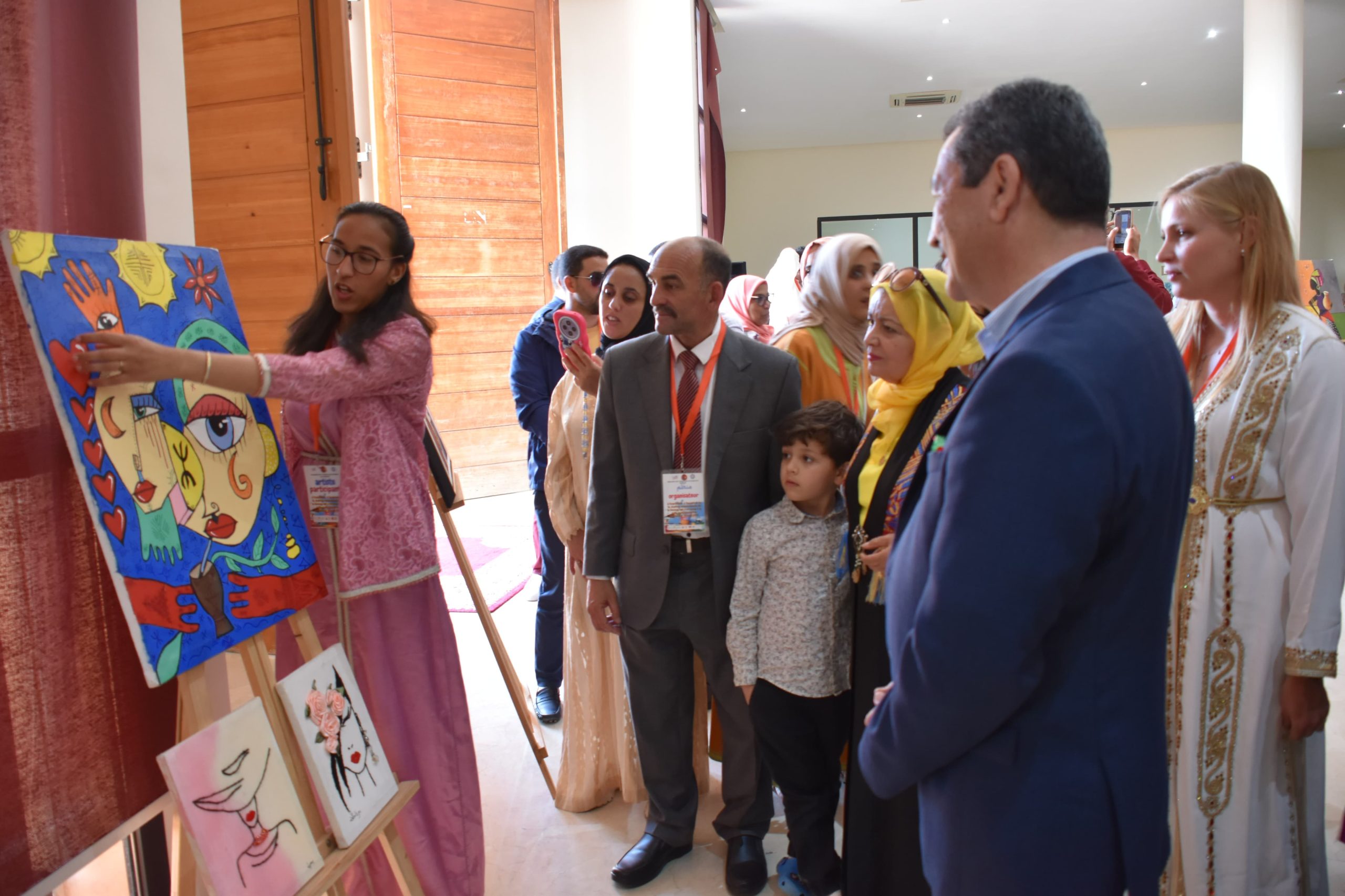 وسط حضور رسمي وثقافي وفني لافت . وبمشاركة واسعة للعديد من الفنانات والفنانين المغاربة والأجانب ، تم افتتاح المعرض من طرف الصحفي والإعلامي الكبير حسن بنمنصور بمعية الفنانة التشكيلية القادمة من فرنسا .