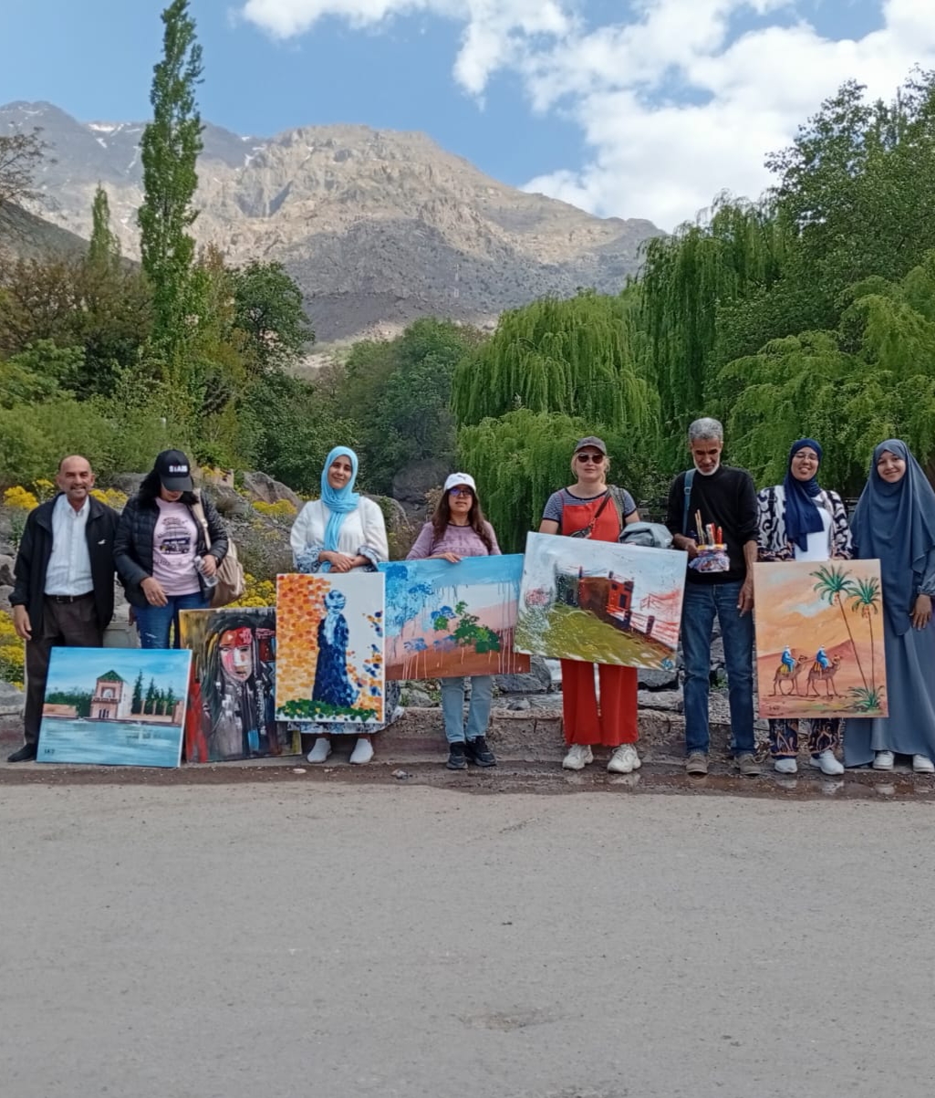 اختتم المعرض الذي لاقى تفاعلا كبيرا من الجمهور حيث أعرب فيه عن إعجابه ومتعته، برحلة فنية الى إمليل ضواحي مدينة مراكش حيث قام الفنانون برسم لوحات تشكيلية تجسد لحظات اللقاء التواصلي مع الفن والفنانين وساكنة هذه المنطقة.
