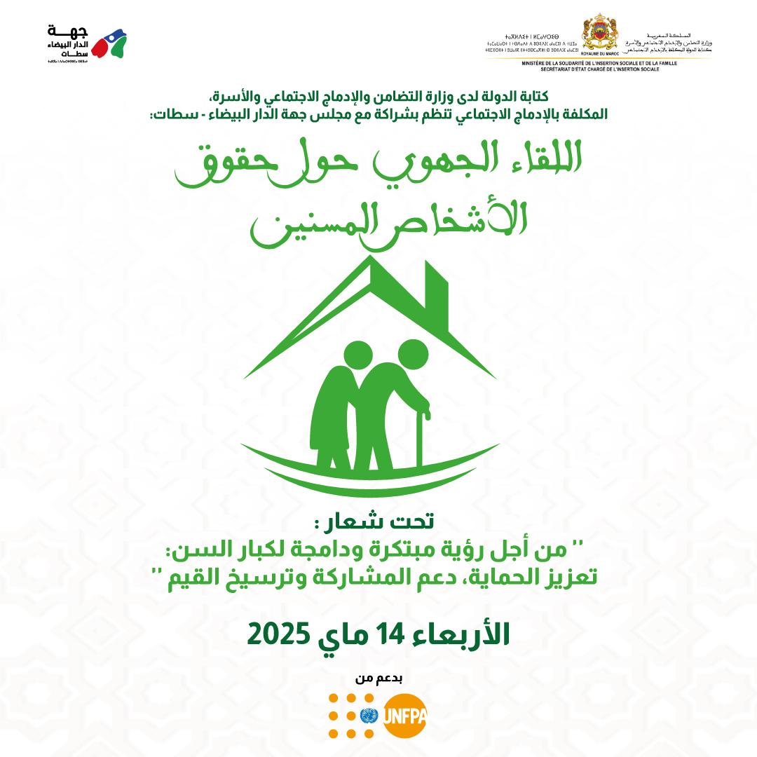 ويندرج هذا اللقاء في إطار تنفيذ التوجيهات الملكية السامية لصاحب الجلالة الملك محمد السادس، نصره الله، الرامية إلى النهوض بأوضاع الأشخاص المسنين، وتنزيل مضامين البرنامج الحكومي 2026.2021، والنموذج التنموي وكذا الالتزامات الدولية في المجال.