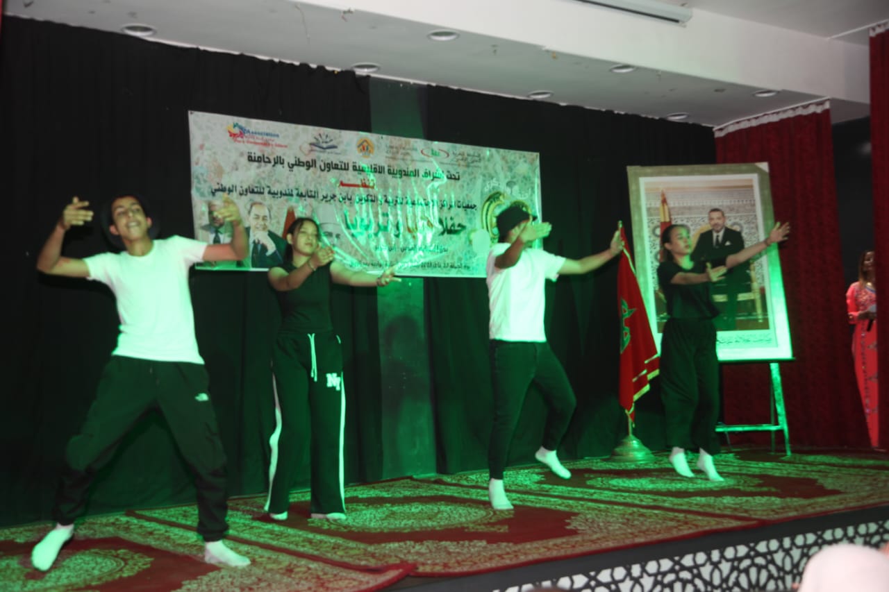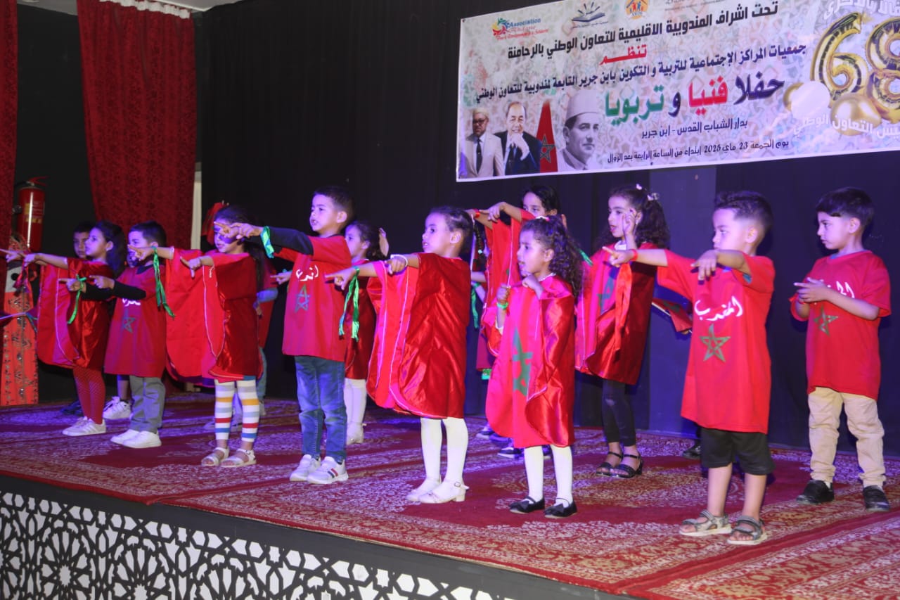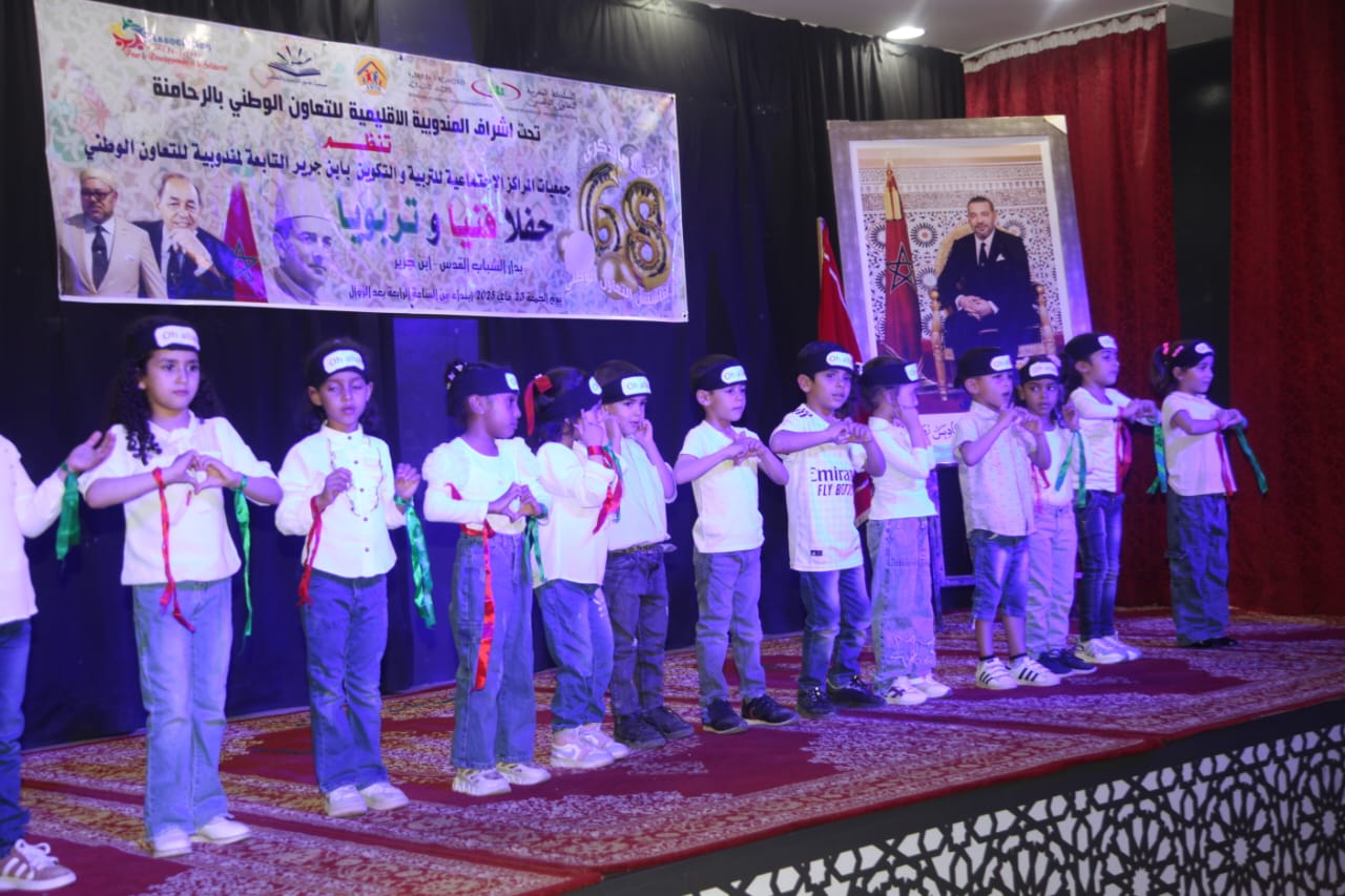 احتفالاً بالذكرى الثامنة والستين لتأسيس التعاون الوطني، نظمت مراكز التربية والتكوين التابعة للتعاون الوطني بإقليم الرحامنة، الجمعة 23 ماي 2025، حفلاً فنياً تربوياً مميزاً بدار الشباب القدس.