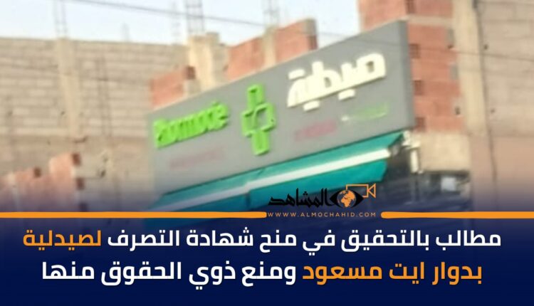 مطالب بالتحقيق في منح شهادة التصرف لصيدلية بدوار ايت مسعود ومنع ذوي الحقوق منها