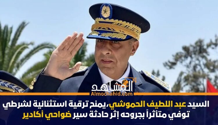 قرر المدير العام للأمن الوطني ولمراقبة التراب الوطني، عبد اللطيف حموشي، منح ترقية استثنائية في الرتبة لمفتش شرطة ممتاز، وافته المنية متأثراً بمضاعفات جروح خطيرة أصيب بها إثر حادثة سير مميتة، وقعت بالمنطقة القروية “التمسية” بضواحي مدينة أكادير.