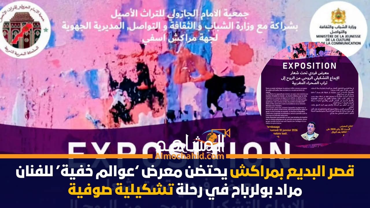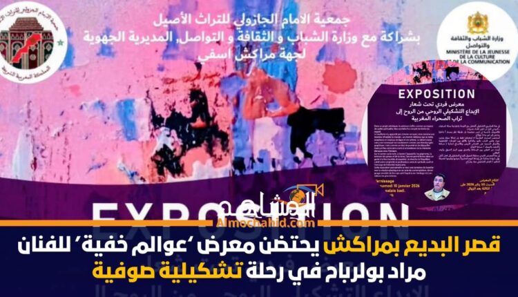 يحتضن قصر البديع بمراكش، خلال الفترة الممتدة من 10 إلى 29 يناير 2026، معرض “عوالم خفية” للفنان الصوفي مراد بولرباح، في تجربة تشكيلية استثنائية تمزج الفن بالبعد الروحي، وتعيد الاعتبار للتراث اللامادي المغربي من خلال رؤية إبداعية معاصرة.