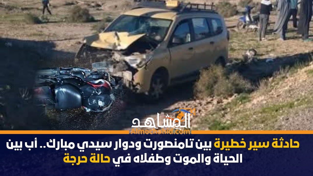 تحوّل المقطع الطرقي الرابط بين تامنصورت ودوار سيدي مبارك، قبل قليل، إلى مسرح لحادثة سير مأساوية أودت بحياة أب وأدخلت طفليه في حالة صحية حرجة، عقب اصطدام قوي بين دراجة نارية وسيارة أجرة.