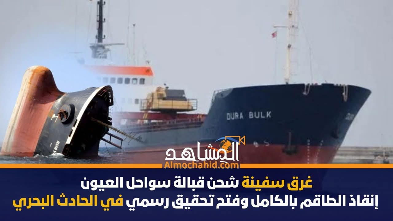 غرق سفينة شحن قبالة سواحل العيون.. إنقاذ الطاقم بالكامل وفتح تحقيق رسمي في الحادث البحري