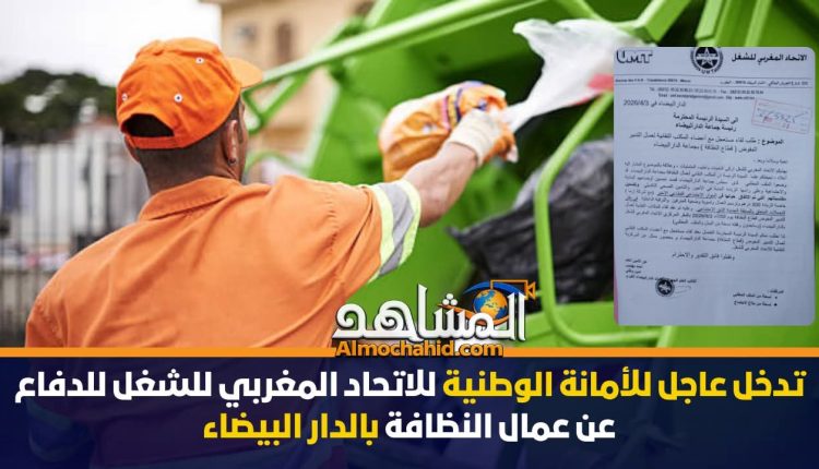 في خطوة تعكس التزامها الثابت بالدفاع عن قضايا الطبقة العاملة، بادرت الأمانة الوطنية للاتحاد المغربي للشغل إلى الدعوة لعقد لقاء مستعجل مع السيدة رئيسة جماعة الدار البيضاء، وذلك من أجل فتح باب الحوار والتفاوض حول الملف المطلبي لعمال التدبير المفوض بقطاع النظافة.