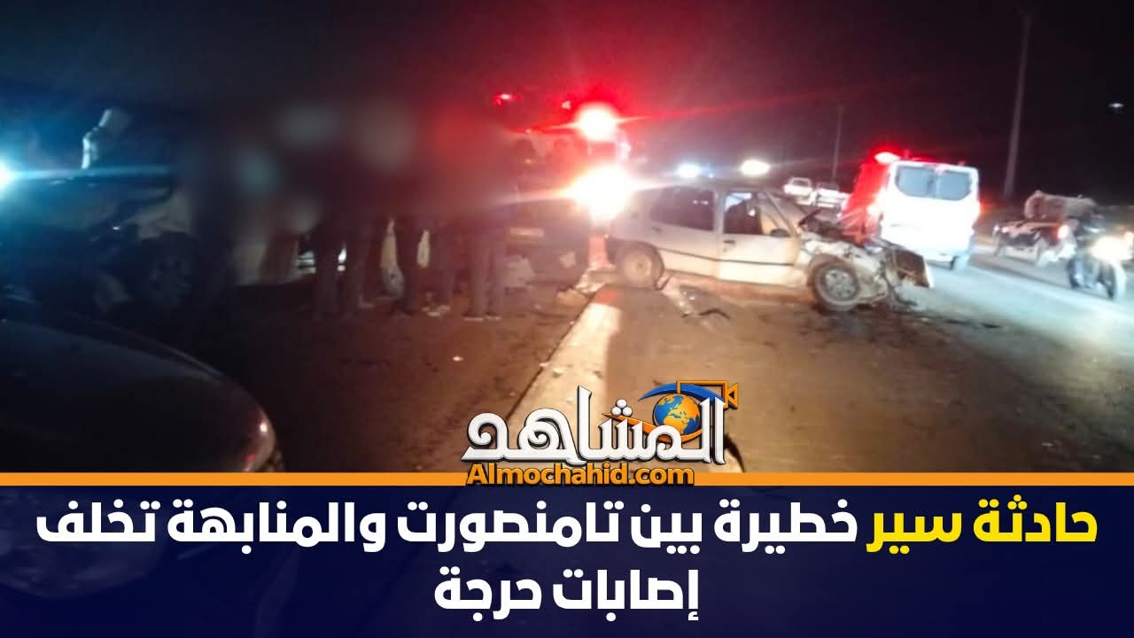 شهد المحور الطرقي الرابط بين تامنصورت ومنطقة المنابهة، على مستوى دوار أولاد سعيد بجماعة حربيل، حادثة سير خطيرة إثر اصطدام قوي بين سيارتين خفيفتين وسيارة أجرة.