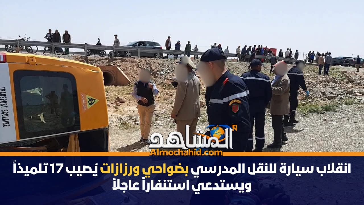انقلاب سيارة للنقل المدرسي بضواحي ورزازات يُصيب 17 تلميذاً ويستدعي استنفاراً عاجلاً