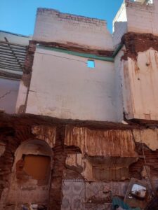 المعطيات الميدانية صادمة؛ فالبناية تعاني من تصدعات عميقة لم تعد تخطئها العين، وانهيارات جزئية جعلت من حائط ضخم “معلقاً” بين السماء والأرض. الساكنة المجاورة، التي استقت الجريدة شهاداتها، تعيش حالة من “الرعب اليومي”؛ فالحائط لا ينتظر إذناً للسقوط، والقدر قد لا يمهل أحداً في هذه المنطقة السياحية الحيوية التي تعج بالحركة.