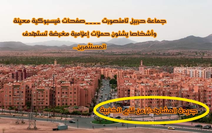 هناك جهات تسعى الى تشويه سمعة مدينة تامنصورت ودواوير حربيل، غايتها أن تؤثر على قرارات تلك الجهات المستثمرة لكي ترحل وتترك المنطقة خراب ، شائعات باستمرار ، ونشر مؤخرا سلسلة من الأكاذيب والاتهامات الباطلة الغرض منها إن…. وأخواتها..