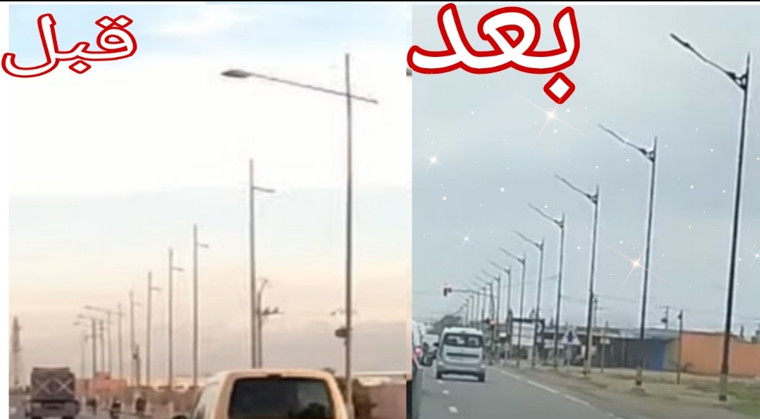 الإنارة العمومية بطريق تامنصورت (قبل-بعد)