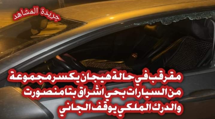 هذا وتعرضت مجموعة من العربات لتكسير وتخريب زجاجها الأمامي والخلفي من قِبل الـ”مقرقب” الذي كان في حالة هستيرية متقدمة.