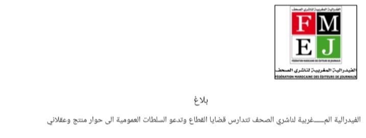 بلاغ : الفيدرالية المــــــغربية لناشري الصحف تتدارس قضايا القطاع وتدعو السلطات العمومية الى حوار منتج وعقلاني.