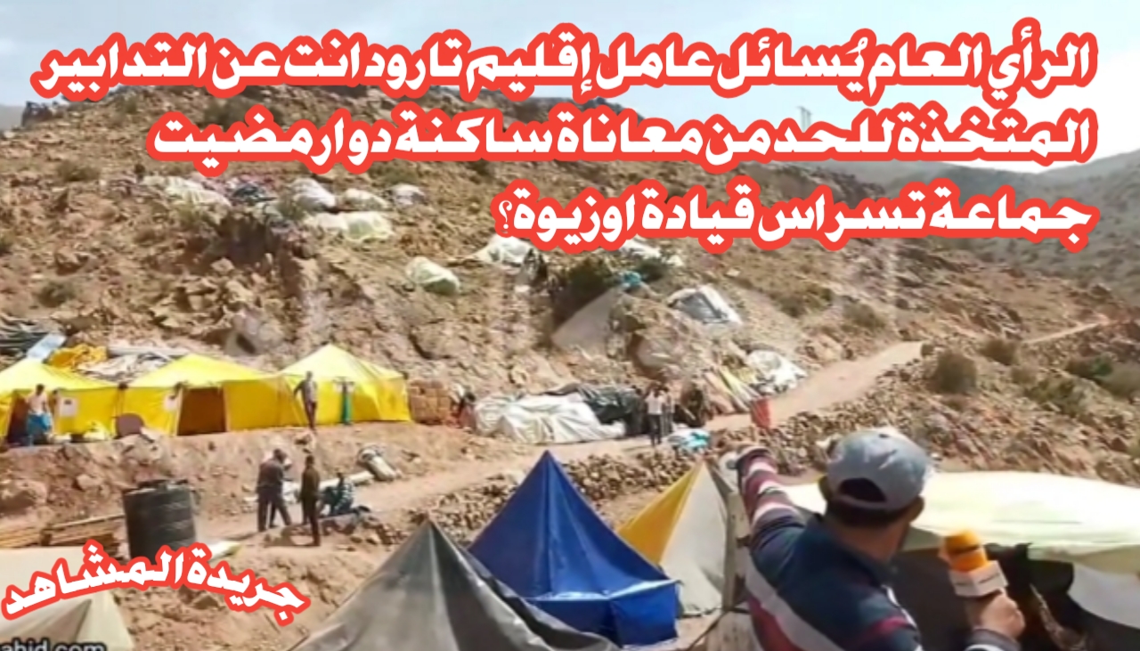 عامل إقليم تارودانت ورئيس دائرة أولوز وقائد قيادة اوزيوة أين أنتم ؟ هناك مواطنون من رعايا صاحب الجلالة ضحايا الزلزال الذي ضرب المغرب فقدوا أقاربهم وماشيتهم .. على الأقل زيارة منكم خفيفة لهم لمواساتهم في محنتهم ،اما المساعدات الإنسانية قاموا بتوصيلها المحسنين والجمعيات إلى أعماق الجبال جزاهم الله خيراً.