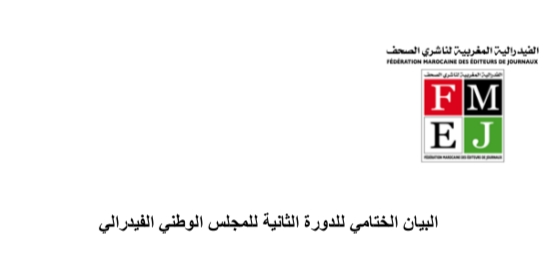 وعلى ضوء مداولات أعضاء المجلس الوطني الفيدرالي، تسجل الفيدرالية المغربية لناشري الصحف ما يلي: