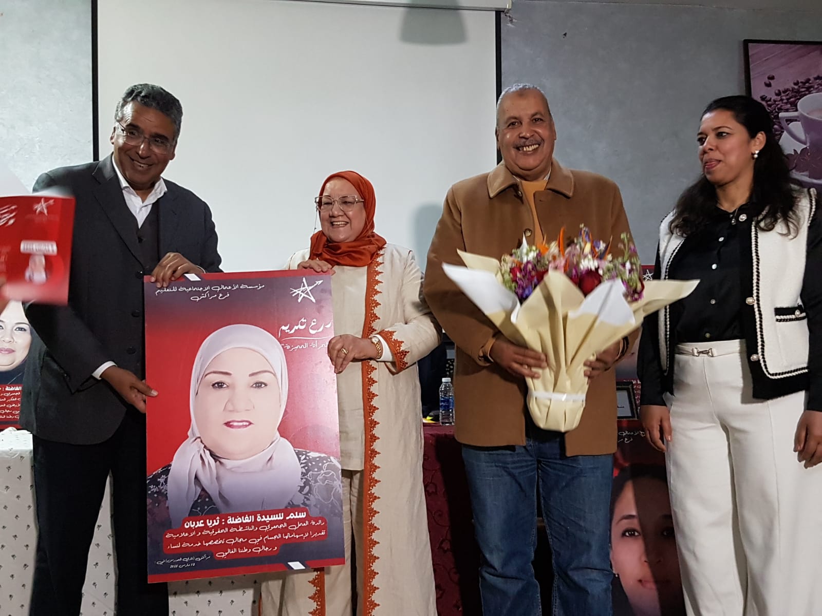 وسط أجواء احتفالية مميزة، خُتم الحفل بالتقاط صور تذكارية للنساء المكرمات، وكان ضمنهن الأستاذة تريا عربان المديرة العامة لموفع المشاهد التي أعطت الكثير في ميدان التعليم والميدان الجمعوي وأيضاً الصحفي وكان ذلك بحضور عدد من الصحفيين الذين وثقوا هذا الحدث الذي يعكس مدى الاعتراف بدور المرأة في تنمية وتطوير المجتمع.